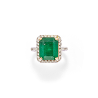 in white and yellow gold, with an octagonal-cut emerald weighing approx. 7.31 ct and diamonds.