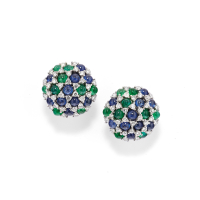in white gold with cabochons sapphire cabochons weighing approx. 3.00 ct, emeralds cabochon weighing approx. 2.70 ct, and modern round brilliant-cut diamonds weighing approx. 0.75 ct. Signed by Fasano, Turin.