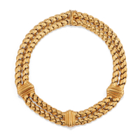 designed as a yellow satin gold soft three strands mesh. Circa 1970.