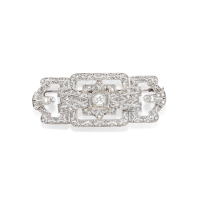 Rectangular-shaped in white gold, featuring openwork millegrain detailing, set with old European-cut and round-cut diamonds.