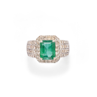 designed as a white gold band with pavé-set diamonds and rectangular step-cut emerald weighing approx. 3.50 ct.