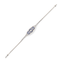 in platinum, in decò style with sapphires and Old European-cut diamonds.
