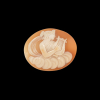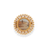 in yellow gold designed as a rounded shape with micromosaic depicting a palace. Late XIX century.
