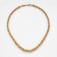 in yellow gold with floral motif and in satin gold with green stones and diamond.