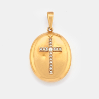 in silver and gold with two scaramazza pearl and diamonds of various cuts wheighing approx. 2.50 ct. First half of the XIX century.