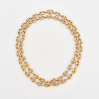 in brushed and polished yellow gold one designed as a cross of life and the other designed an Egyptian cartouche.