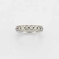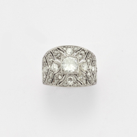 in white gold band with Old European, Old Mine and rose-cut diamonds and a round Old European-cut diamond weighing approx. 0.75 ct.
