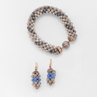 in burnished silver and including a pair of earrings in silver and lapis lazuli spheres and a bracelet in silver spheres.