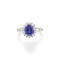 in white gold round shaped with diamonds weighing approx. 1.20 ct and a cushion oval-cut sapphire weighing approx. 2.20 ct.