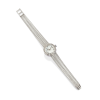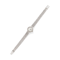 in white gold with a braided links bracelet and dial surrounded by round brilliant-cut diamonds. 1950s-1960s