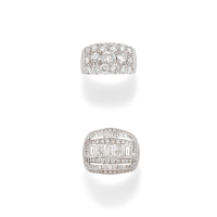 in white gold and diamonds; one with step-cut and round-cut diamonds weighing approx. 1.50 ct; the other with modern round-cut and Old-Mine cut diamonds weighing approx. 2.00 ct.
