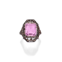 in silver and low-karat yellow gold designed according to the tastes of the period, with rubies of various cuts weighing approx. 1.20 ct all together and Old Mine-cut diamonds weighing approx. 1.00 ct. Late XIX century/early XX century.