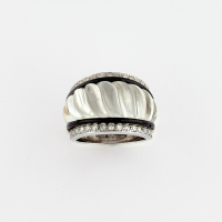in white gold with an undulated rock crystal flanked by onyx and small diamonds.