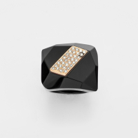 in black acrylic material with rhomboidal element in yellow gold pavè-set with diamonds. Small defect to the central element.