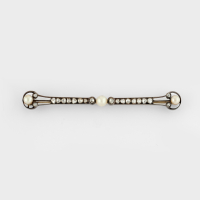 in 9K yellow gold designed as an elongated bar adorned with three pearls and rose-cut diamonds. Italy, early 1900s.