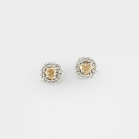 in white gold, set with two heart-cut fancy light yellow diamonds weighing 0.69 ct framed by round brilliant-cut diamonds weighing 0.13 ct for a total of 0.82 ct. Accompanied by AIG certificate.