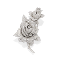 in white gold, pavé-set with diamonds weighing approx. 4.50 ct, depicting a spray of roses. In Peppino Capuano - Roma original fitted case.