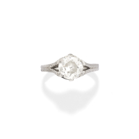 in platinum set with an Old European-cut diamond weighing approx. 2.20 ct.