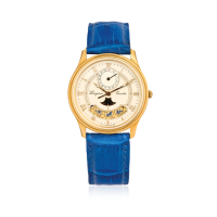 Dial: signed, cream white, applied indexes, centre seconds, calendar, moon phases, months and zodiac signs.