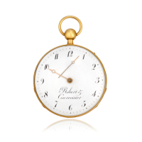 Dial: signed, white enamel, painted numerals, seconds at six.