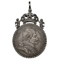 Innocenzo XI (1676-1689) - Piastra Anno VII - Zecca: Roma - Diritto: effigie del Papa a destra - Rovescio: motto entro cartella ornata di valute e rami di quercia - gr. 44,48 (peso comprensivo di montatura) - Esemplare corredato da elegante montatura d'epoca, q.SPL