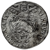 Sisto V (1585-1590) - Testone Anno I - Zecca: Roma - Diritto: stemma sormontato dalle chiavi decussate e dalla tiara - Rovescio: figura muliebre, allegoria della Chiesa, seduta a sinistra, circonda con il braccio destro la cupola di un tempio - gr. 9,27 - Rara - read all