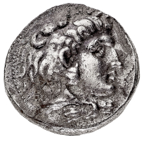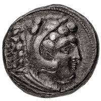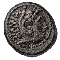 Alessandro III (336-323 a.C.) - Tetradramma postumo databile al periodo 323-320 a.C. - Zecca: Berytos - Diritto: testa di Eracle a destra ricoperta dalle fauci del leone - Rovescio: Zeus seduto a sinistra su un trono, tiene un'aquila con la mano destra e un lungo read all