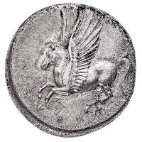Corinto - Statere databile al periodo 345-307 a.C. - Diritto: Pegaso con le redini sciolte, in volo verso sinistra - Rovescio: testa elmata di Atena a sinistra; nel campo a destra un'egida - gr. 8,42 - Lieve porosità del metallo, altrimenti SPL
