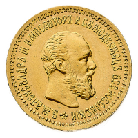 Alessandro III (1881-1894) - 5 Rubli 1890 - Zecca: San Pietroburgo - Diritto: effigie di Alessandro III a destra - Rovescio: aquila bicipite coronata con stemma sul petto - gr. 6,45 - Migliore di SPL