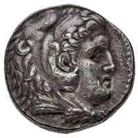 Tolomeo I Soter, come Satrapo (323-305 a.C.) - Tetradramma databile al periodo 320-315 a.C. - Zecca: Byblos - Diritto: testa di Eracle a destra ricoperta dalle fauci del leone - Rovescio: Zeus seduto a sinistra su un trono tiene un'aquila con la mano destra e un lungo read all