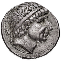 Antioco I Soter (281-261 a.C.) - Tetradramma - Zecca: Ectabana - Diritto: testa diademata di Antioco I a destra - Rovescio: Apollo seduto a sinistra tiene tre frecce con la mano destra e un arco con la sinistra, e due monogrammi; ai suoi piedi, parte anteriore di un read all