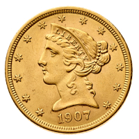 5 Dollari "Liberty Head" 1907 - Zecca: Philadelphia - gr. 8,37 - Migliore di SPL