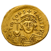 Maurizio Tiberio (582-602) - Solido databile al periodo 583-601 - Zecca: Costantinopoli - Diritto: mezzo busto elmato e diademato dell'Imperatore di fronte con globo crucigero nella mano destra - Rovescio: un angelo stante di fronte tiene una lunga croce con la mano read all