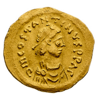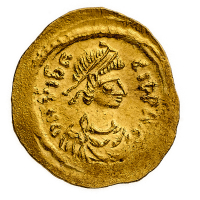 Giustino II (565-578) - Tremisse - Zecca: Ravenna - Diritto: busto diademato, drappeggiato e corazzato dell'Imperatore a destra - Rovescio: la Vittoria andante a destra con il capo rivolto a sinistra, tiene una corona di alloro con la mano destra e un globo crucigero read all