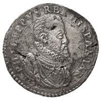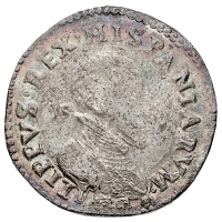 Filippo II di Spagna (1556-1598) - Doppia 1578 - Diritto: busto radiato, paludato e corazzato di Filippo II a destra - Rovescio: stemma sormontato dalla corona, dalla quale escono rami di palma e di alloro - gr. 6,58 - Rara - Lievi difetti al diritto, BB