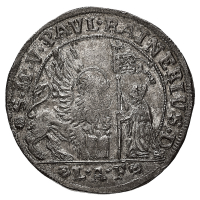 Paolo Renier (1779-1789) - Ducato - Zecca: Venezia - Diritto: il Doge genuflesso riceve da San Marco seduto la benedizione e il vessillo della Repubblica - Rovescio: il leone di San Marco a sinistra con la testa di fronte mostra il Vangelo aperto - gr. 22,83 - Sigle RB read all