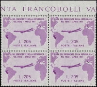 1961 - Gronchi Rosa 205 L. blocco di quattro angolo di foglio superiore destro