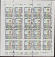 1994 - Natale 750 L. tre coppie verticali bordo o angolo di foglio ciascuna con un esemplare che presenta stampa parziale del colore azzurro - Cert. Raybaudi
