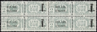 1944 - Fascetto - Insieme di valori con doppia soprastampa - Cert. Chiavarello - Firme Raybaudi, Savarese e Sorani