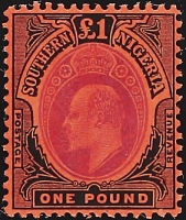 1909 - Edoardo VII 1 £ violetto e nero su carta rossa