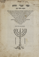 In 4° (213 x 150 mm). Figura della menorah al frontespizio (piccoli difetti.) Legatura coeva in pergamena con cornoce a secco ai piatti, tracce di due bindelle, titolo manoscritto