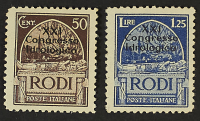 1930 - XXI Congresso Idrologico - La serie - Unito Libia 45 c. oliva blocco di quattro con soprastampa capovolta - Cert. Diena per il Congresso Idrologico