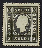1859 - 3 s. nero con dentellatura lineare 15 x 16 - Raro - Da esaminare - Venduto "as is" - Cert. Bottacchi, Diena e Ferchenbauer