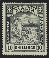 1919 - Giorgio V 10 s. nero bordo di foglio a sinistra - Cert. Diena