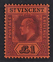1911 - Edoardo VII 1 £. violetto e nero su carta rossa