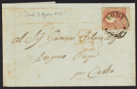 1859 - 5 s. rosso su lettera del 2 luglio (periodo di Governo Provvisorio) su lettera non tassata del 2 luglio da Lodi per Bergamo- Raro uso tollerato dopo l'introduzione dei francobolli sardi - Da esaminare
