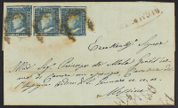 1859 - Siculiana - Ovale in azzurro su assicurata (ovale in azzurro a lato) del 4 ottobre per Petralia Soprano affrancata con 2 gr. due esemplari annullati dal bollo a "ferro di cavallo" in azzurro - Rara - Da esaminare