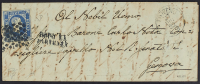 1865 - Genes Bat. a Vapeur - Doppio cerchio in rosso apposto all'arrivo annullatore di Regno definitiva 40 c. tiratura di Londra su lettera del 21 gennaio da Genova per Nizza - Documento non comune e di grande freschezza - Cert. Cardillo