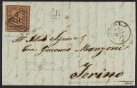 1859 - 4 baj. fulvo su lettera del 10 dicembre da Imola per Torino - Firma G. Bolaffi