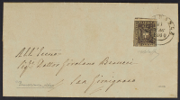 1860 - 10 c. bruno su lettera del 21 maggio da Pomarance per San Gimignano -Firma G. Bolaffi